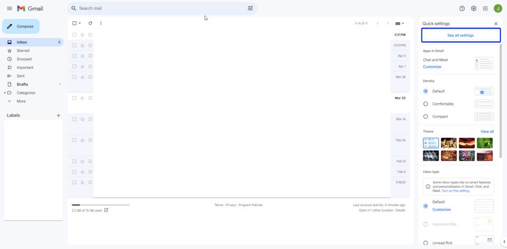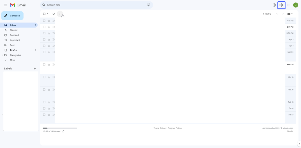 Stap 2 - Klik in je Gmail webmail rechtsboven op het tandwieltje