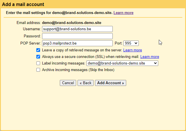 Indien je dit niet doet zal je enkel mails kunnen lezen, maar niet beantwoorden vanuit je custom e-mail.