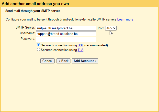- SMTP Server: smtp-auth.mailprotect.be Port: 465