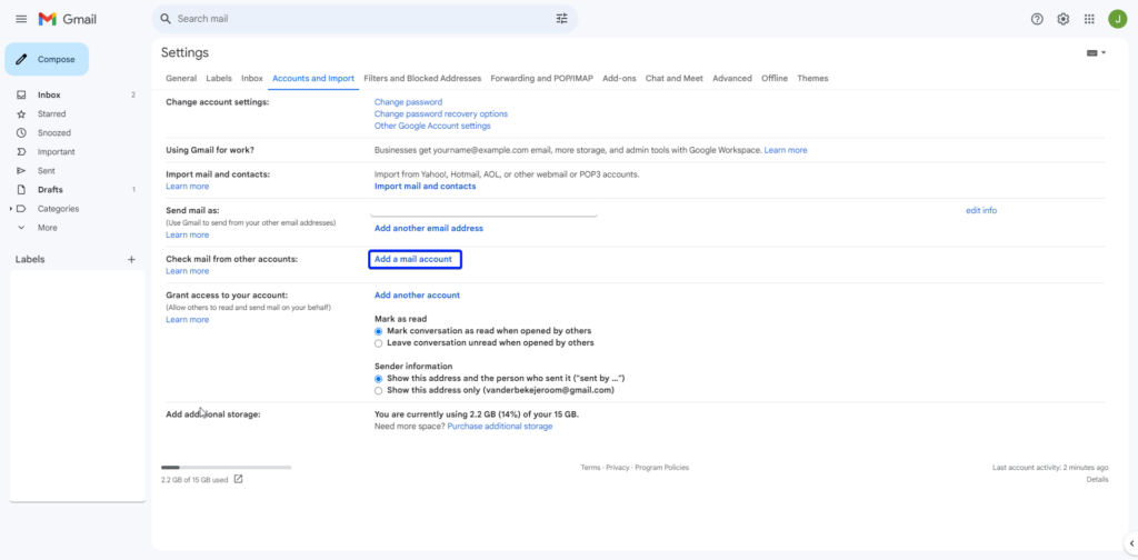 Stap 5 - Klik bij 'Check mail from other accounts' op 'Add mail account'